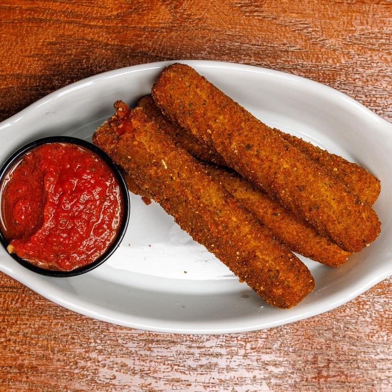 2 pizza logs, 2 chicken fingers, 2 mozzarella sticks, fries.