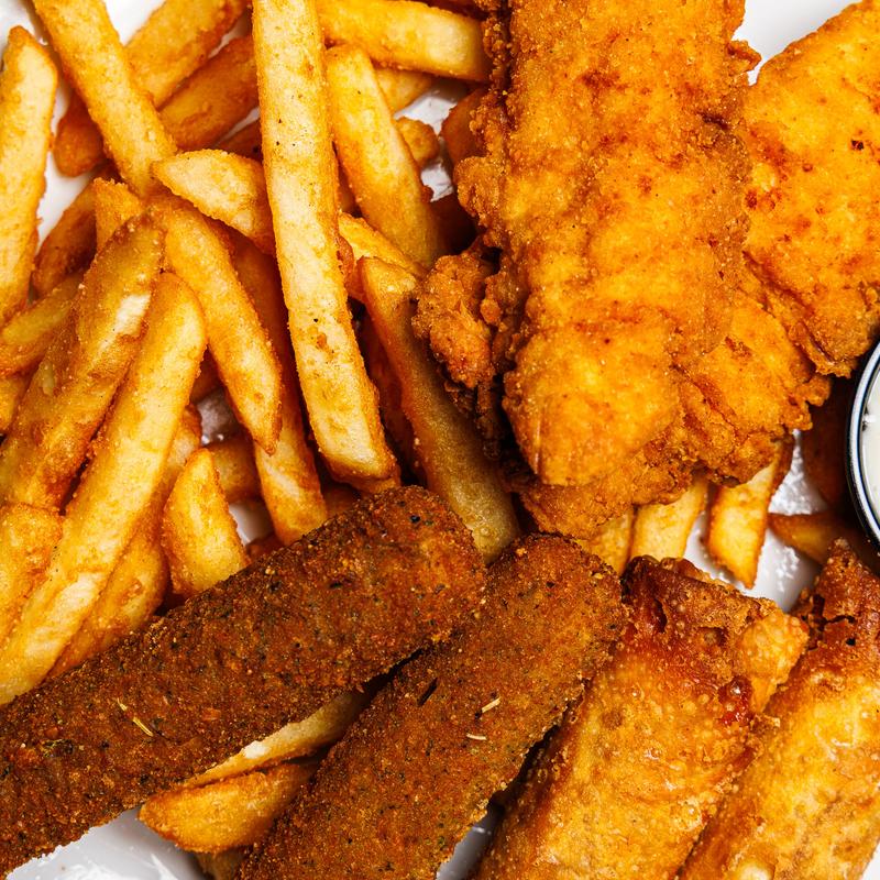 Hand-battered served with fries and coleslaw.