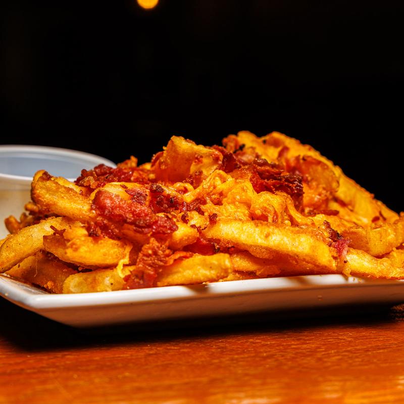 Ranch sauce, chicken fingers, bacon, and mozzarella cheese.